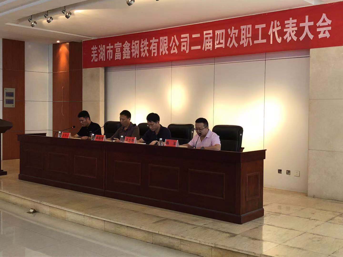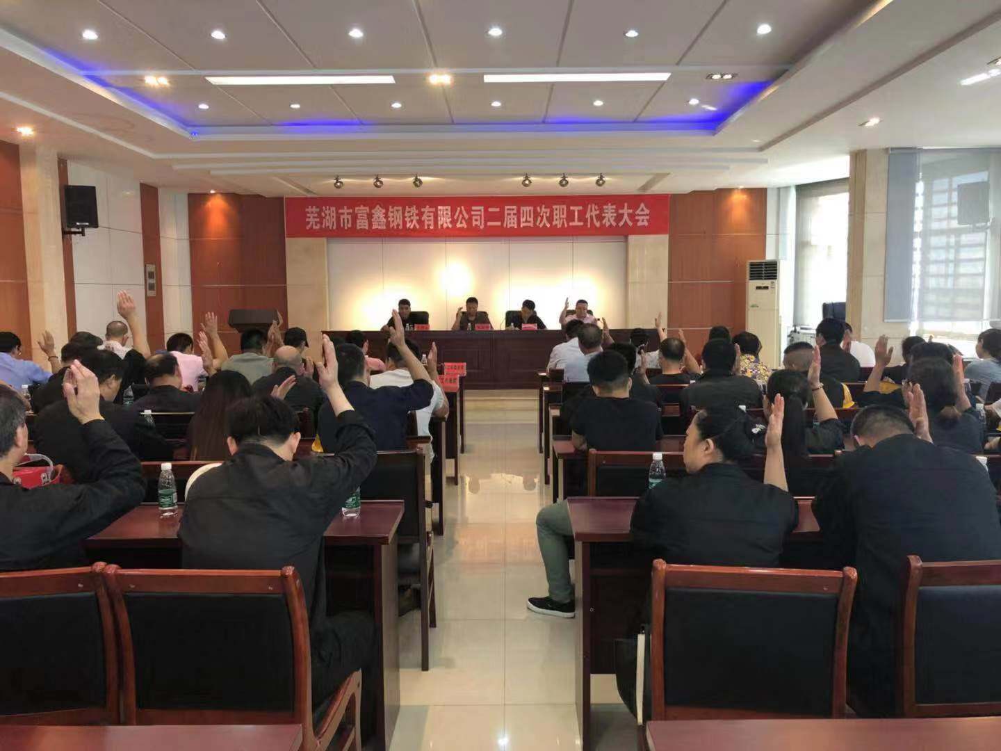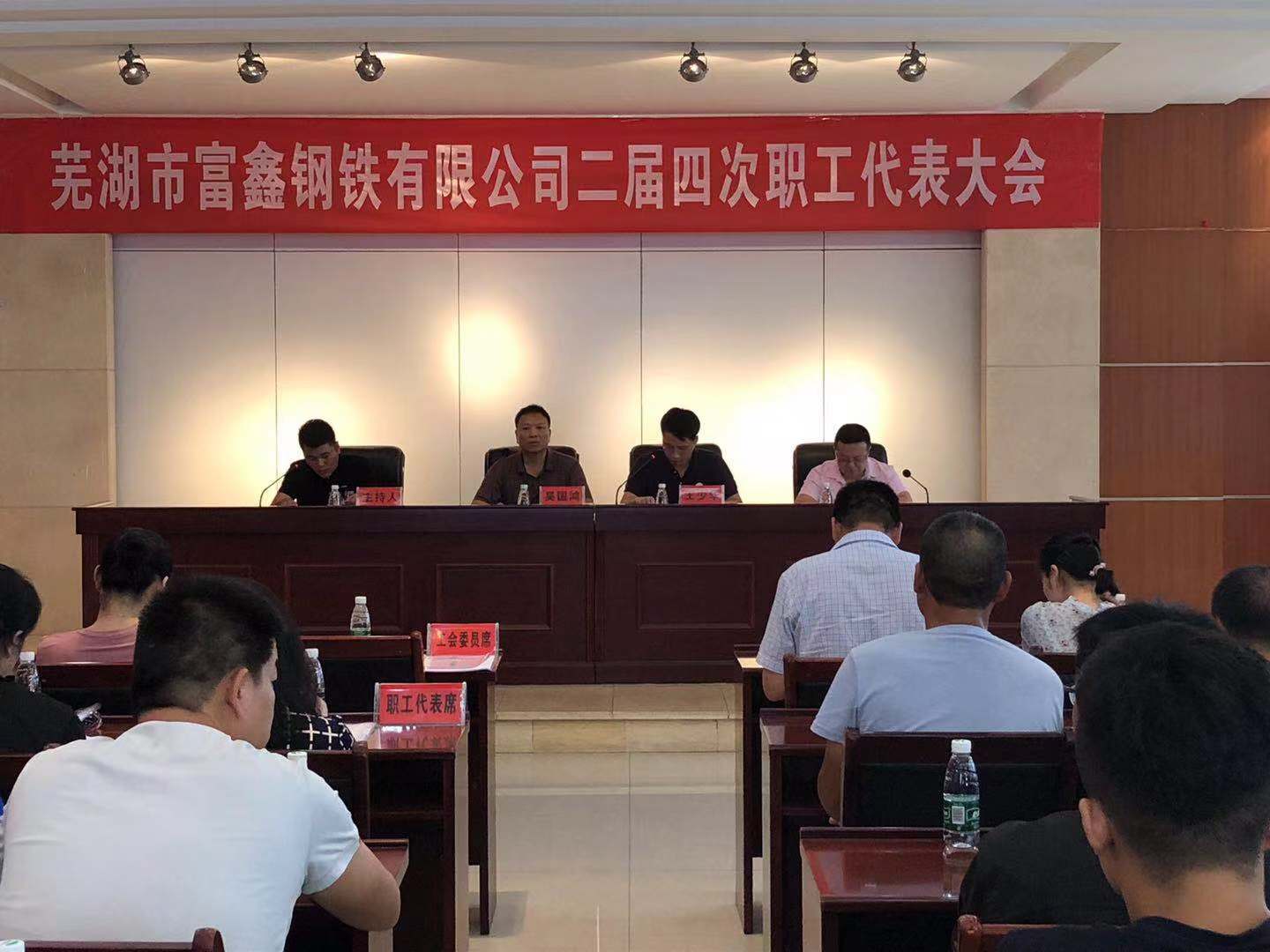 2019年8月6日上午9時(shí)蕪湖市富鑫鋼鐵有限公司第二屆第四次職工代表大會(huì)在雄壯的國歌聲中隆重開幕!受公司黨委書記王文奇同志委托,陳玉同志代表公司黨委對(duì)大會(huì)致辭!會(huì)上全體工會(huì)委員、職工代表精神飽滿,積極審議。并認(rèn)真舉手表決,全票審議通過了公司2019版《員工手冊(cè)修訂草案》和工會(huì)主席王少華同志作的題為《有效提升工會(huì)服務(wù)意識(shí) 共譜和諧發(fā)展新篇章》工會(huì)工作報(bào)告。最后由公司領(lǐng)導(dǎo)吳國鴻同志致大會(huì)閉幕辭!此次大會(huì)回顧了2018年公司各部門全年的工作,并且號(hào)召全體員工在公司黨委的堅(jiān)強(qiáng)領(lǐng)導(dǎo)下,統(tǒng)一思想,堅(jiān)定信心,攻堅(jiān)克難,開拓創(chuàng)新,全力以赴,為全面實(shí)現(xiàn)2019年公司生產(chǎn)發(fā)展目標(biāo)而努力奮斗!