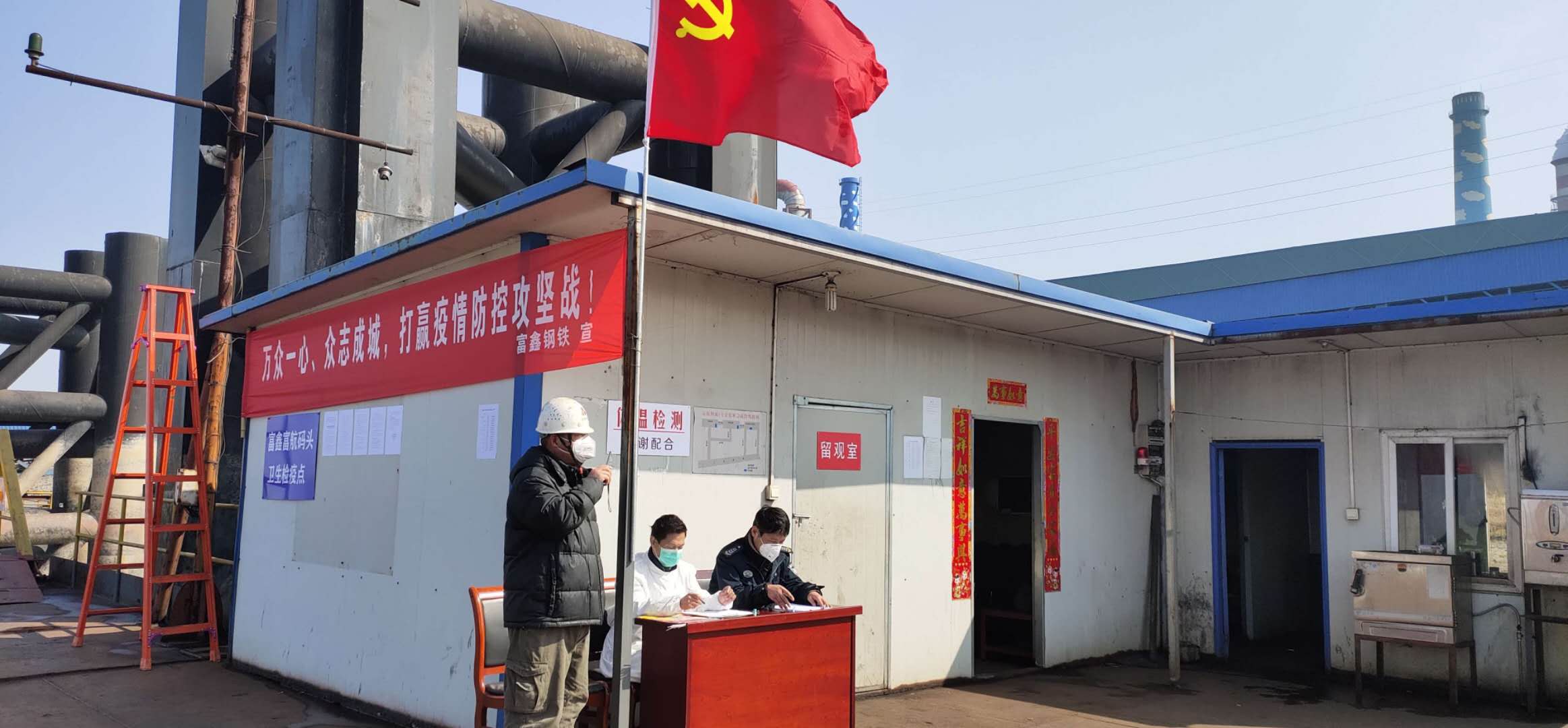 黨旗飄揚在戰(zhàn)“疫”一線!【全面部署,嚴防死守,確保疫情防控有力有序】近日,為堅決遏制新型冠狀病毒感染引起的肺炎疫情擴散,蕪湖市富鑫鋼鐵有限公司對所屬碼頭加強管控,抽調公司各部門管理人員,迅速成立碼頭衛(wèi)生檢疫站點。對碼頭生產運行進行實時監(jiān)控。對進出港船只人員進行嚴格管控,嚴禁下船操作,凡是來自重點疫區(qū)船只一律不得靠港。對碼頭作業(yè)人員規(guī)定時間進行體溫檢測。做到黨員干部靠前指揮,旗幟鮮明,宣傳標語口號響亮!防控措施有力!各部門上下協(xié)調通順,全力打贏碼頭疫情防控阻擊戰(zhàn)!